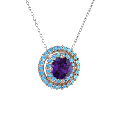 Ametist ve akuamarin 925 ayar rose altın kaplama gümüş kolye (40 cm gümüş rolo zincir)