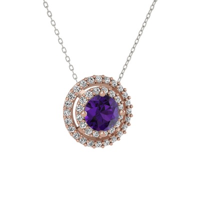 Ametist ve beyaz zirkon 925 ayar rose altın kaplama gümüş kolye (40 cm gümüş rolo zincir)