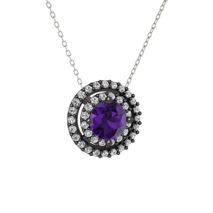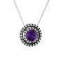 Ametist ve beyaz zirkon 925 ayar siyah rodyum kaplama gümüş kolye (40 cm beyaz altın rolo zincir)