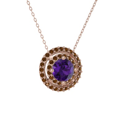 Ametist ve dumanlı kuvars 925 ayar rose altın kaplama gümüş kolye (40 cm gümüş rolo zincir)
