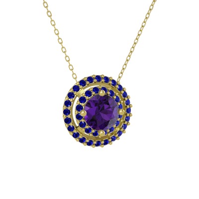 Ametist ve lab safir 14 ayar altın kolye (40 cm altın rolo zincir)