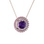 Ametist ve pembe kuvars 18 ayar beyaz altın kolye (40 cm rose altın rolo zincir)
