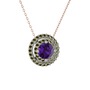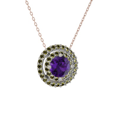 Ametist ve peridot 14 ayar beyaz altın kolye (40 cm rose altın rolo zincir)