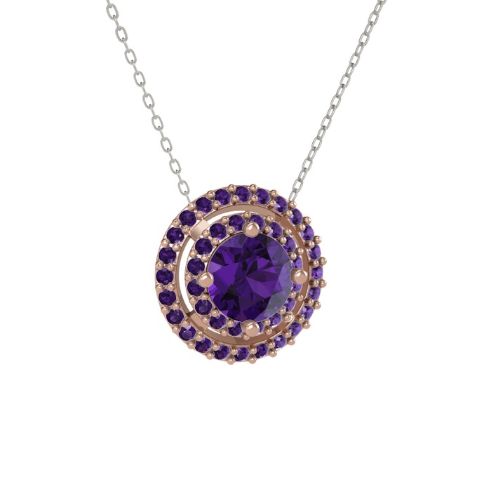 Ametist 925 ayar rose altın kaplama gümüş kolye (40 cm beyaz altın rolo zincir)
