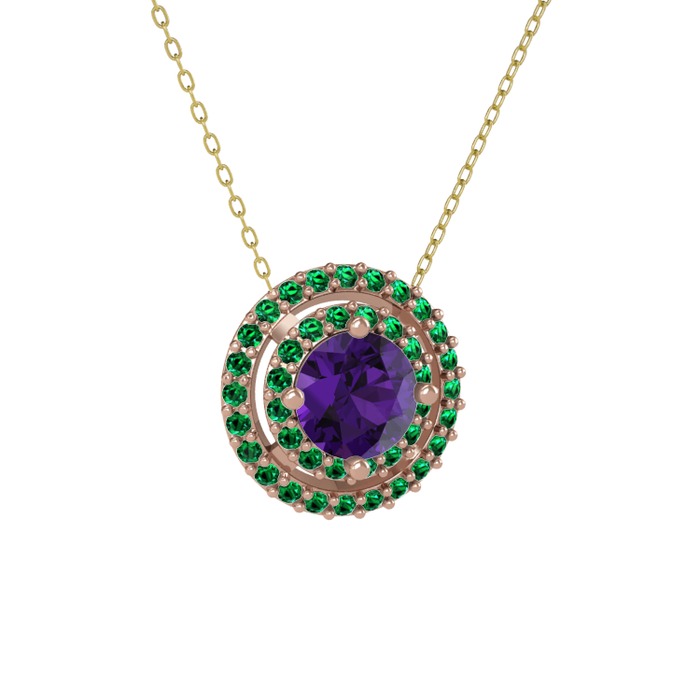 Ametist ve yeşil kuvars 18 ayar rose altın kolye (40 cm altın rolo zincir)