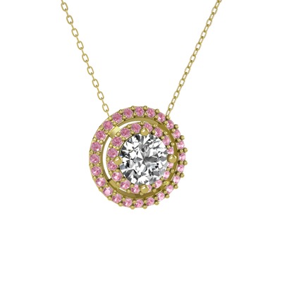 Beyaz zirkon ve pembe kuvars 14 ayar altın kolye (40 cm altın rolo zincir)
