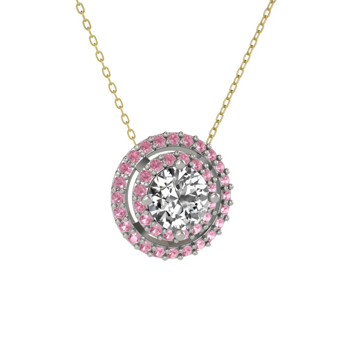 Beyaz zirkon ve pembe kuvars 14 ayar beyaz altın kolye (40 cm altın rolo zincir)