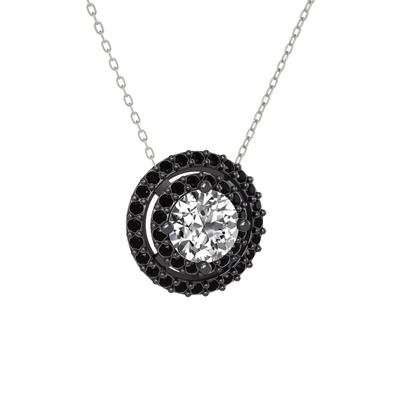 Beyaz zirkon ve siyah zirkon 925 ayar siyah rodyum kaplama gümüş kolye (40 cm gümüş rolo zincir)
