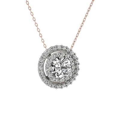Beyaz zirkon ve swarovski 14 ayar beyaz altın kolye (40 cm rose altın rolo zincir)