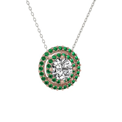 Beyaz zirkon ve yeşil kuvars 8 ayar rose altın kolye (40 cm beyaz altın rolo zincir)