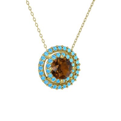 Dumanlı kuvars ve akuamarin 8 ayar altın kolye (40 cm altın rolo zincir)