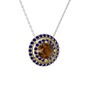 Dumanlı kuvars ve lab safir 18 ayar altın kolye (40 cm beyaz altın rolo zincir)
