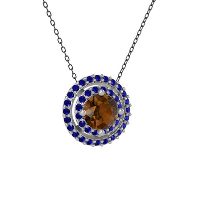 Dumanlı kuvars ve lab safir 18 ayar beyaz altın kolye (40 cm gümüş rolo zincir)