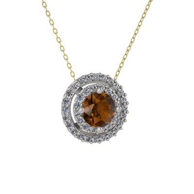 Dumanlı kuvars ve pırlanta 925 ayar gümüş kolye (0.351 karat, 40 cm altın rolo zincir)