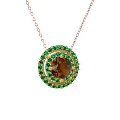 Dumanlı kuvars ve yeşil kuvars 18 ayar altın kolye (40 cm rose altın rolo zincir)