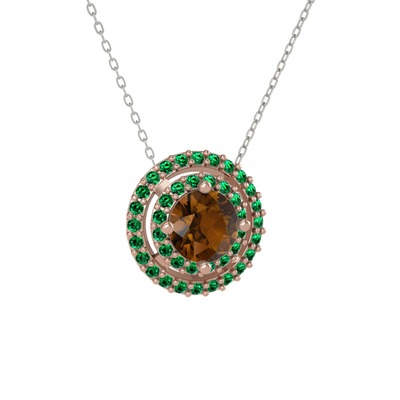 Dumanlı kuvars ve yeşil kuvars 8 ayar rose altın kolye (40 cm beyaz altın rolo zincir)