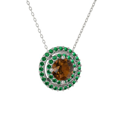 Dumanlı kuvars ve yeşil kuvars 925 ayar gümüş kolye (40 cm gümüş rolo zincir)