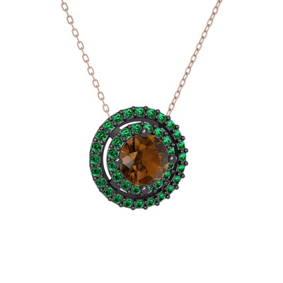 Dumanlı kuvars ve yeşil kuvars 925 ayar siyah rodyum kaplama gümüş kolye (40 cm rose altın rolo zincir)