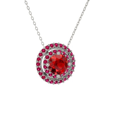 Garnet ve rodolit garnet 14 ayar beyaz altın kolye (40 cm gümüş rolo zincir)