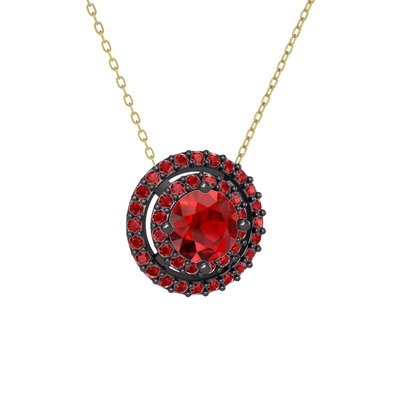 Garnet 925 ayar siyah rodyum kaplama gümüş kolye (40 cm altın rolo zincir)