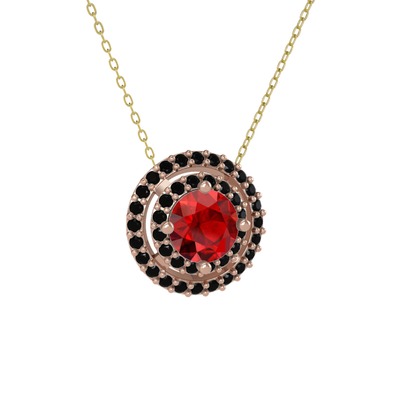 Garnet ve siyah zirkon 925 ayar rose altın kaplama gümüş kolye (40 cm gümüş rolo zincir)