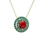 Garnet ve yeşil kuvars 14 ayar beyaz altın kolye (40 cm gümüş rolo zincir)