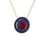 Kök yakut ve lab safir 925 ayar siyah rodyum kaplama gümüş kolye (40 cm altın rolo zincir)