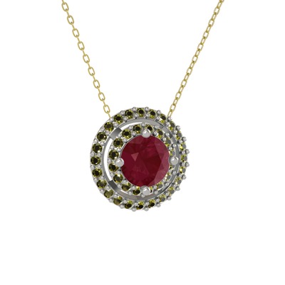 Kök yakut ve peridot 925 ayar gümüş kolye (40 cm gümüş rolo zincir)