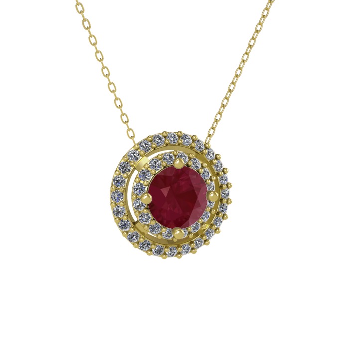 Kök yakut ve pırlanta 18 ayar altın kolye (0.351 karat, 40 cm gümüş rolo zincir)