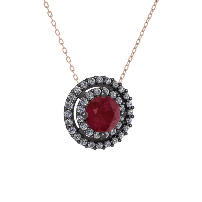 Kök yakut ve pırlanta 925 ayar siyah rodyum kaplama gümüş kolye (0.351 karat, 40 cm rose altın rolo zincir)