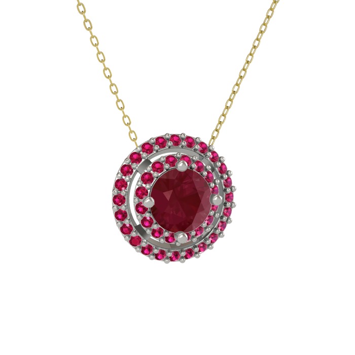 Kök yakut ve rodolit garnet 14 ayar beyaz altın kolye (40 cm altın rolo zincir)