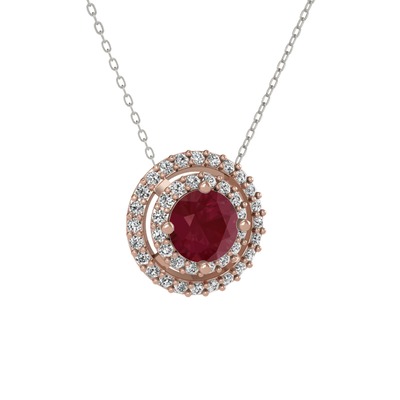 Kök yakut ve swarovski 925 ayar rose altın kaplama gümüş kolye (40 cm beyaz altın rolo zincir)