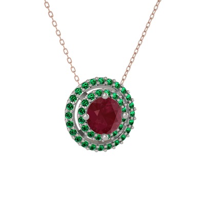 Kök yakut ve yeşil kuvars 18 ayar beyaz altın kolye (40 cm rose altın rolo zincir)