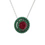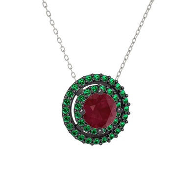 Kök yakut ve yeşil kuvars 925 ayar siyah rodyum kaplama gümüş kolye (40 cm beyaz altın rolo zincir)