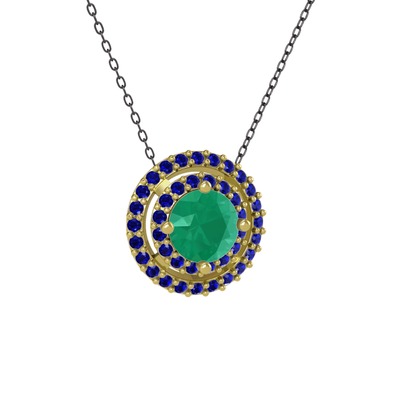 Kök zümrüt ve lab safir 14 ayar altın kolye (40 cm gümüş rolo zincir)