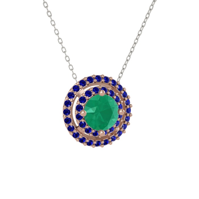 Kök zümrüt ve lab safir 925 ayar rose altın kaplama gümüş kolye (40 cm beyaz altın rolo zincir)