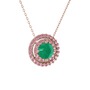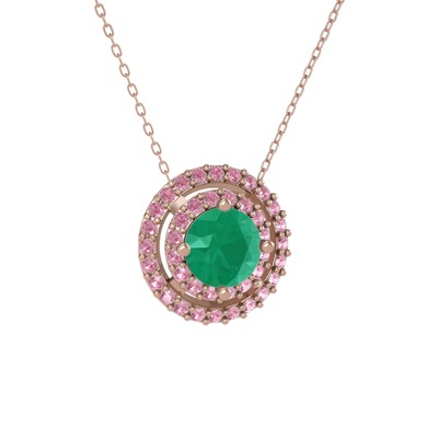 Kök zümrüt ve pembe kuvars 8 ayar rose altın kolye (40 cm rose altın rolo zincir)