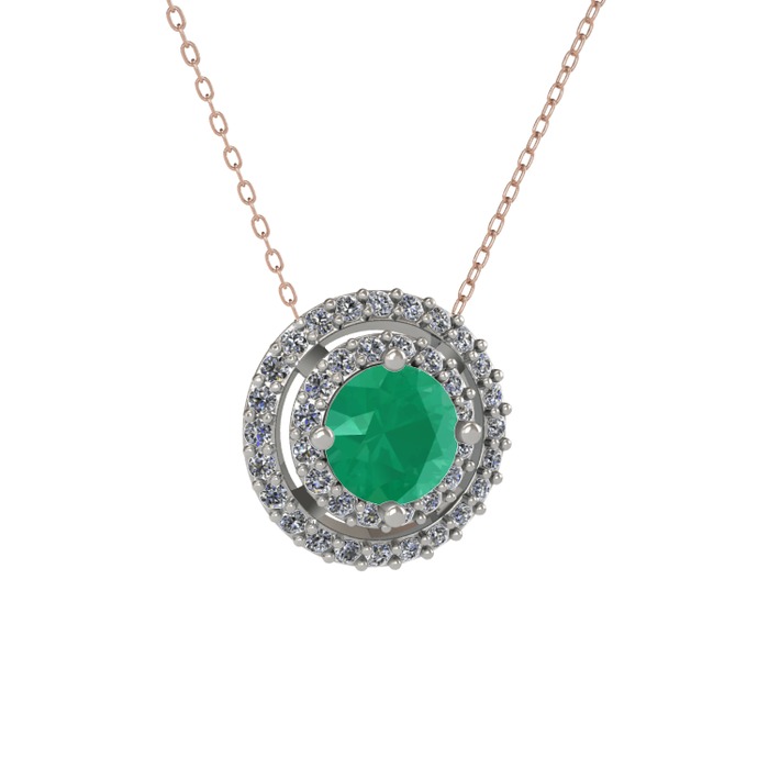 Kök zümrüt ve pırlanta 18 ayar beyaz altın kolye (0.351 karat, 40 cm rose altın rolo zincir)