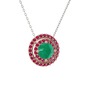 Kök zümrüt ve rodolit garnet 8 ayar rose altın kolye (40 cm beyaz altın rolo zincir)