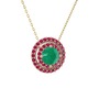 Kök zümrüt ve rodolit garnet 925 ayar rose altın kaplama gümüş kolye (40 cm altın rolo zincir)