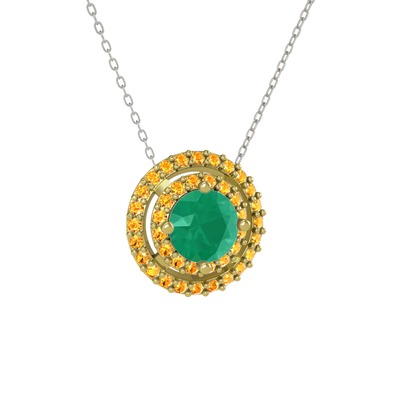 Kök zümrüt ve sitrin 14 ayar altın kolye (40 cm beyaz altın rolo zincir)