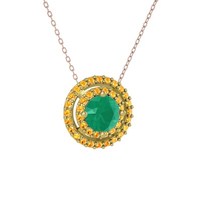 Kök zümrüt ve sitrin 14 ayar altın kolye (40 cm rose altın rolo zincir)