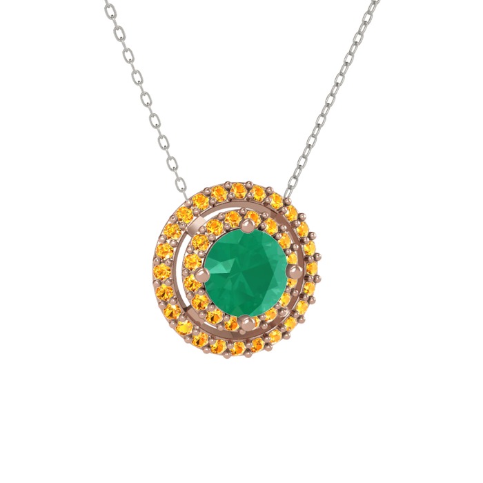 Kök zümrüt ve sitrin 8 ayar rose altın kolye (40 cm beyaz altın rolo zincir)