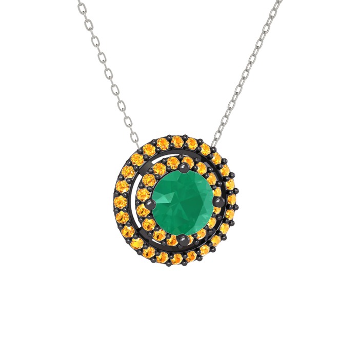Kök zümrüt ve sitrin 925 ayar siyah rodyum kaplama gümüş kolye (40 cm beyaz altın rolo zincir)