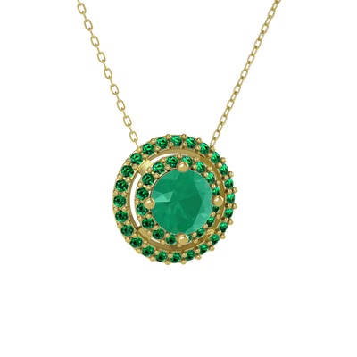 Kök zümrüt ve yeşil kuvars 8 ayar altın kolye (40 cm altın rolo zincir)
