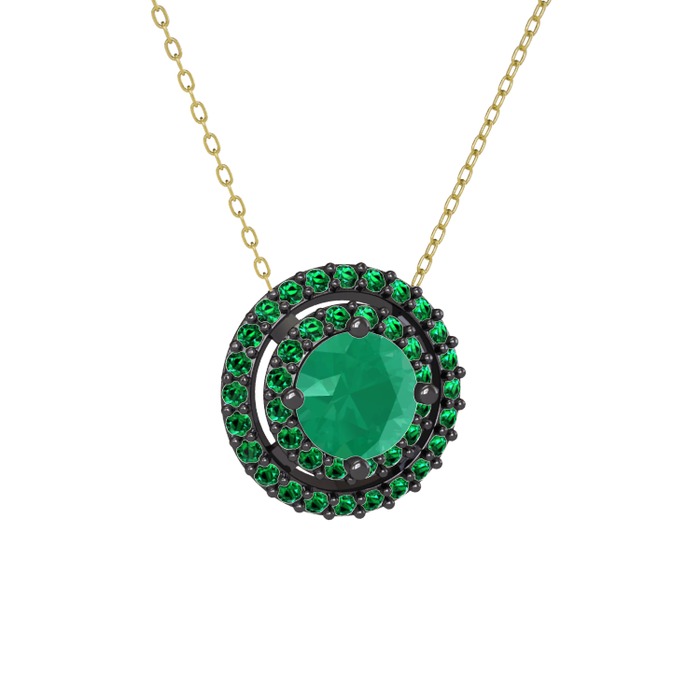 Kök zümrüt ve yeşil kuvars 925 ayar siyah rodyum kaplama gümüş kolye (40 cm altın rolo zincir)