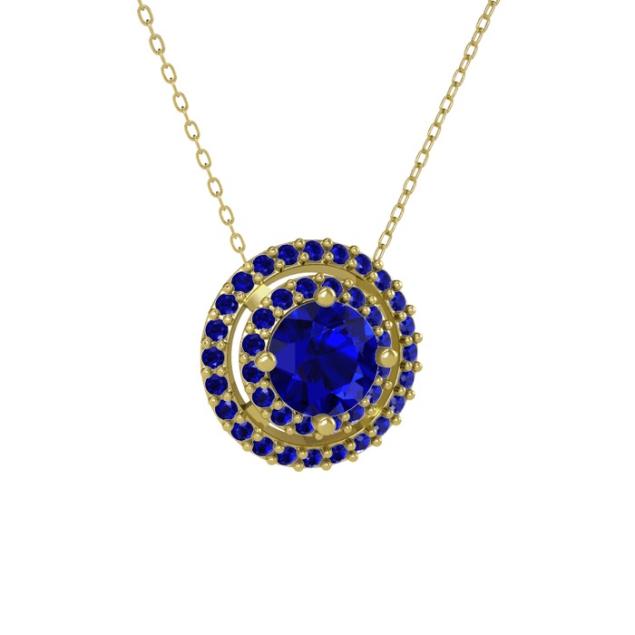 Lab safir 14 ayar altın kolye (40 cm altın rolo zincir)
