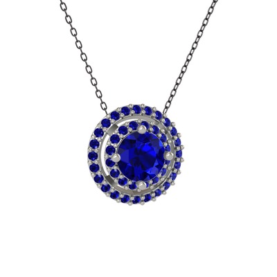 Lab safir 8 ayar beyaz altın kolye (40 cm gümüş rolo zincir)