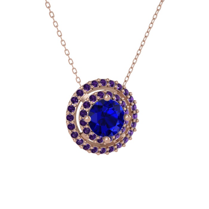 Lab safir ve ametist 8 ayar rose altın kolye (40 cm gümüş rolo zincir)