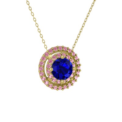 Lab safir ve pembe kuvars 14 ayar altın kolye (40 cm altın rolo zincir)